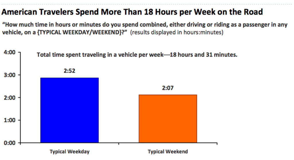 Now the first thing to know is we spend a lot of time in our cars. On average each of us spends upwards of 20 hours per week and travel more than 200 miles per week. Now of