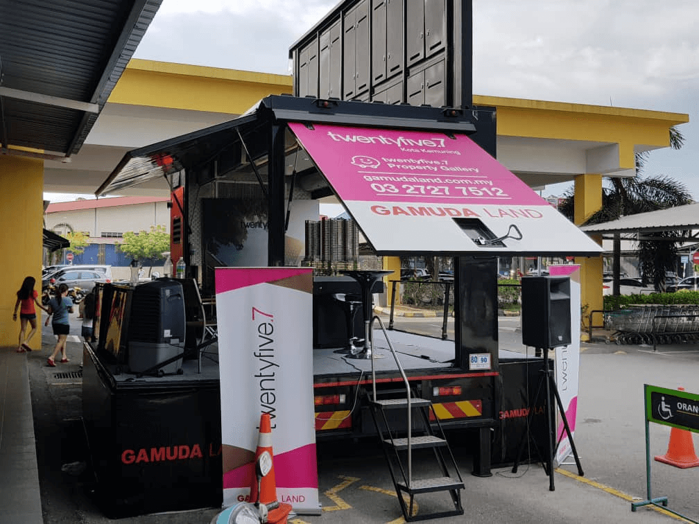 Mobile LED truck advertising is an effective sales and marketing tool to reach your desired target audience in specific geographical locations. With its spacious exhibition space and stage extension for marketing and branding activities, you can do almost anything from a mobile sales gallery, mobile sales store, mobile roadshow, mini-concert, product sampling, campaign talks and so much more! Our LED truck advertising service is available within Peninsular Malaysia.